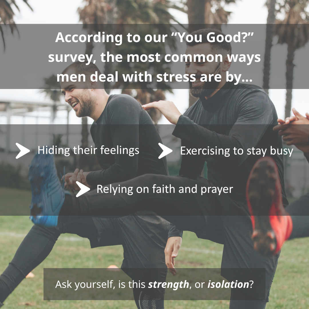 Our “You Good?” survey found that 36% of men in Frederick County use faith and prayer to manage stress. Mental health tools look different for everyone, and spiritual grounding is a powerful one for many men.